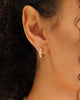 Turn heads with these stylish women’s Emerald Cut Inset Hoop Earrings. Our gold hoops with clear emerald-cut stones are tiny but bold, showcasing the sophistication of our Classic Hoops in a more understated design.