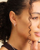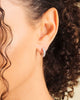 Our silver Iced Out Hoop Earrings for women are guaranteed to dial up your look. Pavé diamond simulants cover the front of these silver hoops, with the back showing off a glimmering silver shine.