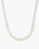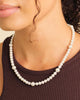 We've added a unique twist to our women's Pearl Necklace to make this timeless piece stand out. The Offset Pearl Necklace alternates 6mm and 8mm shell pearls, secured with a stainless steel silver clasp and extension chain. Create a bold statement with this stylish pearl necklace.