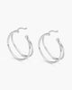 Our women's X Hoop Earrings in silver showcase double hoops intertwined for a chic and dynamic design. Crafted with a polished finish and a 925 sterling silver post, these earrings add a touch of contemporary flair to any ensemble.