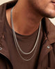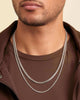 Two is better than one. This layered Cuban Link Chain stack features both 3mm and 5mm gauges for a clean, dimensional look. Each piece is finished with our new custom box clasp, engravable for free. The perfect gift for men who know the power of detail.