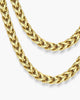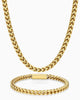 Sculpted for bold style, the Franco Set 5mm in gold features a matching chain and bracelet in our new 5mm gauge. Sleek, chevron-shaped links deliver polished shine and lasting durability, while the signature engravable box clasp adds a personal touch. Perfect solo or layered, this set makes a standout statement.