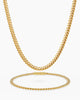 Subtle yet strong. This 3mm Cuban Link Chain and Bracelet Set brings an understated polish to any outfit. Crafted with our new custom box clasps—engraving included. Designed for daily wear and made to give.