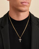 The gold Micro Cross Pendant is the perfect piece to add to your everyday look. This mini-pendant adds a subtlety to balance from the eye-catching shine of handset diamond simulants. Pair with one of your favorite chains to take your look to the next level.