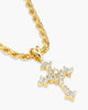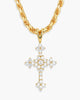 Elevate your style with our new Pavé Cross Pendant. This piece features a durable stainless steel royal cross adorned with pavé sparkling diamond simulants. Wear this Pavé Cross on your favorite gold JAXXON chain as a symbol of faith or an eye catching statement piece.