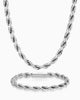 Refined and easy to wear, the silver 5mm Rope Set adds sharp, polished detail to any outfit. Both the chain and bracelet feature our signature engravable box clasp for a sleek, personalized finish. Pair them up for a modern, go-anywhere look that never misses.