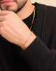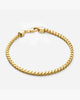 The 3mm Solid Gold Franco Bracelet is built by our most experienced jewelers in Italy, who carefully interlock each link to ensure optimal flexibility and performance. This tightly woven pattern creates a luxurious, substantial feel on the wearer's wrist, and ultimately results in a bracelet that is as visually striking as it is enduring. Complete the look with our men’s 3mm gold Franco chain necklace.