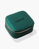 Keep your favorite jewelry pieces safe at home and on the go with our Emerald Travel Jewelry Case. The vegan leather exterior has a metallic sheen for a modern feel and a hard shell, perfect for travel. The interior has a super soft vegan leather lining and includes a pillow to keep your chains and other precious jewelry items safe from damage. Place smaller accessories like earrings and rings in the soft and secure pocket.