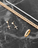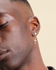 The earring everyone’s been asking for: the Hanging Cross Stud Earring. This unique men’s gold earring has a studded cross dangling from a 1ct diamond simulant stud for delicate movement and maximum style.