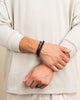 All black everything. Introducing our boldest men’s bracelet duo: the Hidden Hills black onyx beaded bracelet + black Ace Cuff. Each bead on our Hidden Hills bracelet is cut from Grade AAA black onyx stone, and offers organic texture and shape to balance the smooth lines and minimal design of the black cuff bracelet.