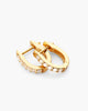 Deck out your ears with our newest iced out hoops. Our gold Studded Huggie Earrings have sparkling diamond simulants and sit close to the ear for a sleek fit. These trendy Huggies are here to stay.