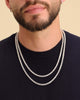 This men's Tennis Chain Stack includes two of our stunning 4mm silver Tennis Chains adorned with sparkling simulant diamonds handset in a durable, silver 4-prong setting. Make it yours today!