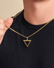 Clean lines and aesthetics draw the eye to this modern, geometric pendant. The gold Trinity Pendant is designed with beveled edges and a fine brush finish for an accessory you'll love to wear day in and day out.