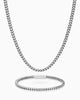 Bright and modern, the silver Women’s 3mm Franco Set adds crisp shine to any outfit. The matching chain and bracelet come finished with our signature engravable box clasp, giving you a subtle, customizable touch. Pair them up for a fresh, coordinated style you’ll reach for every day.