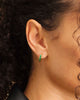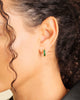 These women's Green Emerald Cut Inset Hoop Earrings are small but bold. Gorgeous green diamond simulants are inset into these women's gold hoops for a unique and original earring.