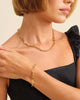Introducing our 5mm gold Paperclip Chain and Bracelet Set, a contemporary fusion of elegance and modern style. Crafted from high-quality 925 sterling silver bonded with opulent 14k gold, the flattened links of this set create a sleek silhouette that effortlessly elevates any ensemble. With its adaptable design and luxurious finish, this set is the perfect statement piece for those who appreciate both fashion and sophistication.