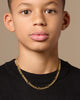 Step up their style with the 5mm gold Youth Figaro Chain, a bold take on a classic design. Its polished gold finish and distinctive Figaro links deliver a strong, modern look that works perfectly solo or layered. A standout piece for everyday wear with effortless edge. (Not intended for children twelve & under.)
